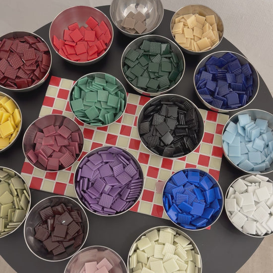 Bring Dopamin Decor in deine Räume! Unsere handgefertigte Mosaikplatte kombiniert klassische Mosaike mit nicen Farben.